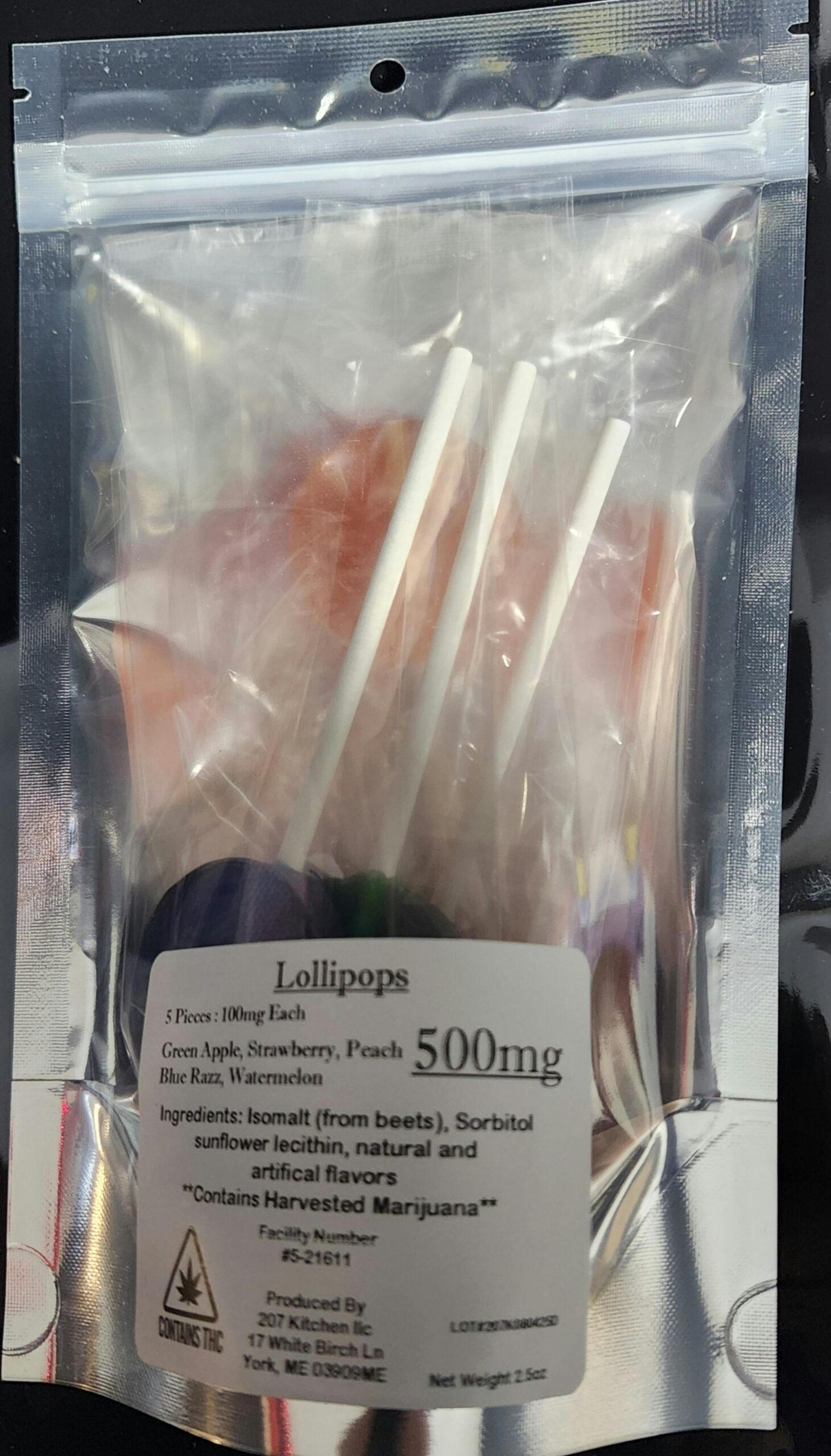 5 lollipops 100 mg a piece, locally made right here in Lebanon Maine and with limited ingredients.
